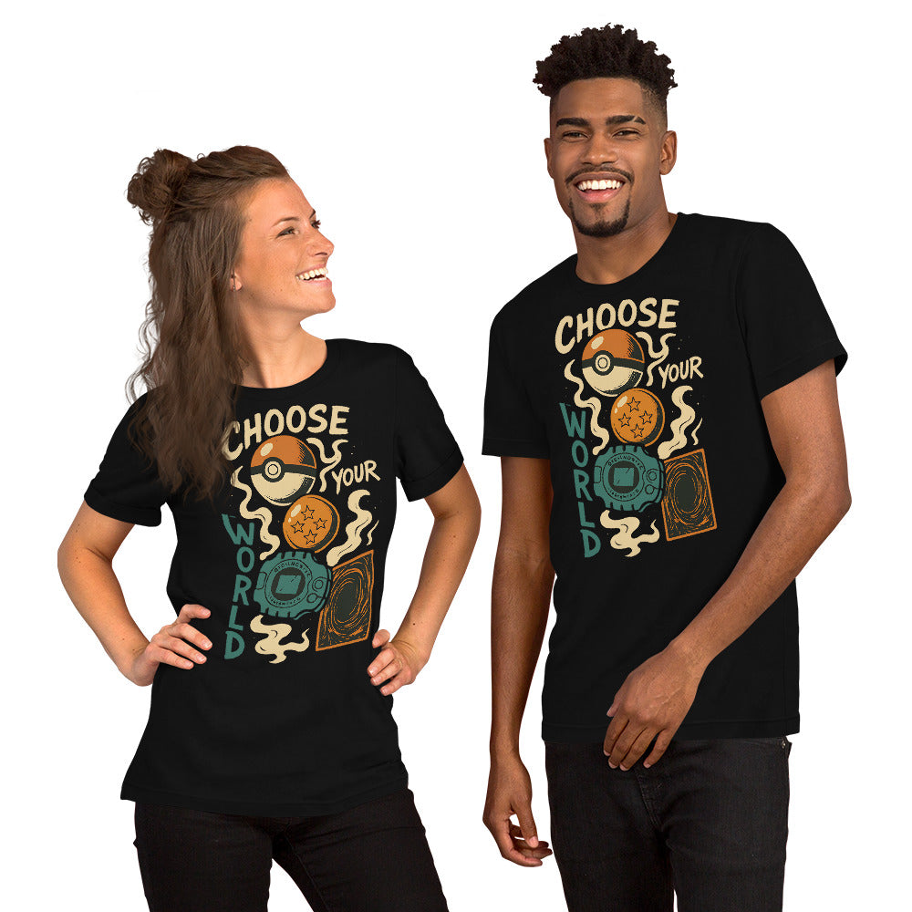 Turn back the clock in style with the Choose Your World Retro Tee, designed for lovers of gaming, sci-fi, movies, and all things pop-culture. This shirt merges nostalgic visuals with modern comfort, creating a statement piece that looks and feels timeless.